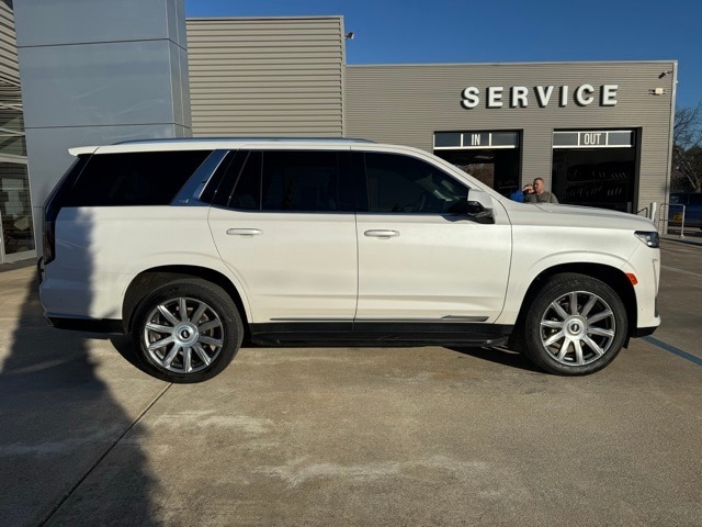 2022 Cadillac Escalade Premium Luxury Platinum LOCAL TRADE, 4WD, NAVIGATION, SUNROOF, LEATHER SEATS, HEATED/COOLED SEATS, BLUETOOTH, REAR VIEW CAMERA, REMOTE START, KEYLESS ENTRY, BLIND SPOT MONITOR, SATELLITE RADIO, DVD ENTERTAINMENT, 36 SPEAKER AUDIO, 4WD, Whisper Beige With Gideon Accents Leather, Adaptive Cruise Control, AKG Studio Reference 36-Speaker Audio System, Automatic Seat Belt Tightening, Automatic Stop/Start, Black Roof Rack Cross Rails, Cargo Convenience Package, Door Lock & Latch Shields, Electronic Limited-Slip Differential, Enhanced Automatic Emergency Braking, Enhanced Automatic Parking Assist, Floor Console w/Covered Storage, Glass Breakage Sensor, Hitch Guidance w/Hitch View, Integrated Trailer Brake Controller, NAVIGATION, Platinum Interior Trim, Power Panoramic Tilt-Sliding Sunroof, Preferred Equipment Group 1SG, Rear Camera Mirror, Rear Camera Mirror Washer, Rear Cargo Shade (LPO), Rear Cross Traffic Alert, Rear Seat Entertainment System, Reconfigurable Full-Color Head-Up Display, Reverse Automatic Braking, Running Board Assist Steps, Smart Trailer Integration Indicator, Start/Stop System Disable Button, Theft-Deterrent Alarm System, Touring Package, Trailer Side Blind Zone Alert, Vehicle Inclination Sensor, Vehicle Interior Movement Sensor, Vertical Cargo Net (LPO). 6.2L V8 4WD 14/19 City/Highway MPG
