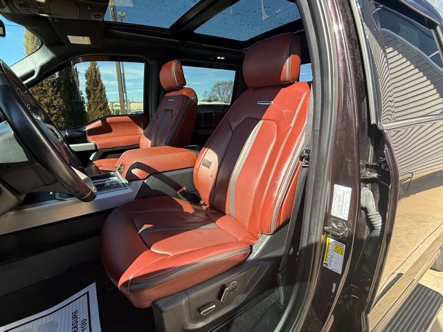 Equipment Group 701A Luxury (Tailgate Step w/Tailgate Lift Assist), Technology Package (Active Park Assist and Lane-Keeping System), 10 Speakers, 20" Polished Aluminum Wheels, 4-Wheel Disc Brakes, ABS brakes, Adjustable pedals, Air Conditioning, Alloy wheels, AM/FM radio: SiriusXM, AppLink/Apple CarPlay and Android Auto, Auto High-beam Headlights, Auto tilt-away steering wheel, Auto-dimming door mirrors, Auto-dimming Rear-View mirror, Automatic temperature control, Black Unique Multi-Contour Leather Bucket Seats, Brake assist, Bumpers: body-color, Class IV Trailer Hitch Receiver, Compass, Delay-off headlights, Driver door bin, Driver vanity mirror, Dual front impact airbags, Dual front side impact airbags, Electronic Stability Control, Emergency communication system: SYNC 3 911 Assist, Extended Range 36 Gallon Fuel Tank, Exterior Parking Camera Rear, Front anti-roll bar, Front Bucket Seats, Front Center Armrest, Front dual zone A/C, Front fog lights, Front License Plate Bracket, Front reading lights, Front wheel independent suspension, Fully automatic headlights, Garage door transmitter, Genuine wood door panel insert, Heated door mirrors, Heated front seats, Heated rear seats, Heated steering wheel, Illuminated entry, Integrated Trailer Brake Controller, Low tire pressure warning, Memory seat, NAVIGATION, Occupant sensing airbag, Outside temperature display, Overhead airbag, Overhead console, Panic alarm, Passenger door bin, Passenger vanity mirror, Pedal memory, Power door mirrors, Power driver seat, Power passenger seat, Power steering, Power windows, Radio data system, Radio: B&O Sound System by Bang & Olufsen, Rain sensing wipers, Rear Parking Sensors, Rear reading lights, Rear seat center armrest, Rear step bumper, Rear window defroster, Remote keyless entry, Security system, SiriusXM Radio, Speed control, Speed-sensing steering, Split folding rear seat, Steering wheel memory, Steering wheel mounted audio controls, SYNC 3, Tachometer, Telescoping steering wheel, Tilt steering wheel, Traction control, Tray Style Floor Liner, Trip computer, Turn signal indicator mirrors, Twin Panel Moonroof, Variably intermittent wipers, Ventilated front seats, Voice-Activated Touchscreen Navigation, Voltmeter, and Wheel Well Liner.