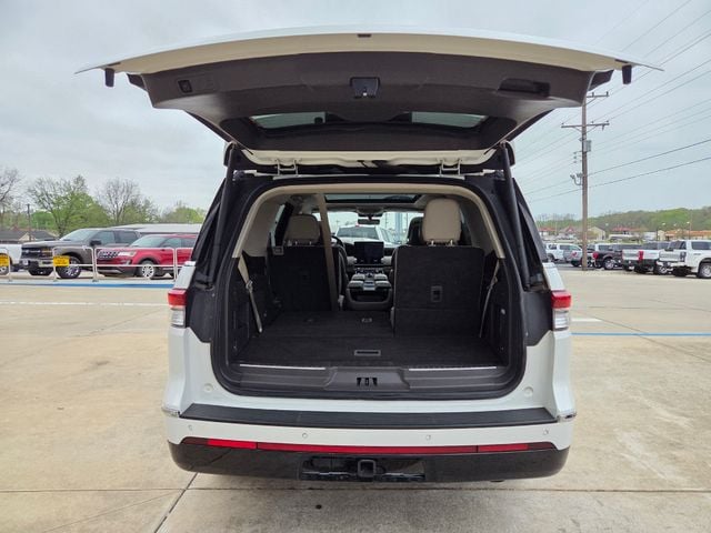 Equipment Group 201A Reserve I, Luxury Package (Illuminated 1st & 2nd Row Seat Belts, Lincoln Lit Star in Grille, Perfect Position Seats (30-Way) w/Active Motion, and Radio: Revel Ultima 3D Audio System w/28 Speakers), 4WD, Sandstone Leather, 14 Speakers, 2nd Row Heated/Ventilated 40/Console/40 Seat, 3.73 Axle Ratio, 3rd row seats: split-bench, 4-Wheel Disc Brakes, ABS brakes, Adaptive suspension, Adjustable pedals, Air Conditioning, Alloy wheels, AM/FM radio: SiriusXM with 360L, Apple CarPlay/Android Auto, Audio memory, Auto High-beam Headlights, Auto Start-Stop Technology, Auto tilt-away steering wheel, Auto-dimming door mirrors, Auto-dimming Rear-View mirror, Auto-leveling suspension, Automatic temperature control, Bodyside moldings, Brake assist, Bumpers: body-color, Chrome Roof Rack w/Black Crossbars, Compass, Delay-off headlights, Driver door bin, Driver vanity mirror, Driver's Seat Mounted Armrest, Dual front impact airbags, Dual front side impact airbags, Electronic Stability Control, Emergency communication system: 911 Assist, Exterior Parking Camera Rear, Four wheel independent suspension, Front anti-roll bar, Front Bucket Seats, Front dual zone A/C, Front fog lights, Front reading lights, Fully automatic headlights, Garage door transmitter, Genuine wood dashboard insert, Genuine wood door panel insert, Head restraints memory, Heads-Up Display, Heated door mirrors, Heated front seats, Heated rear seats, Heated steering wheel, HVAC memory, Illuminated entry, Lane Departure Warning System, Leather steering wheel, Low tire pressure warning, Memory seat, Navigation system: Connected Navigation (1-year trial), Occupant sensing airbag, Outside temperature display, Overhead airbag, Overhead console, Panic alarm, Passenger door bin, Passenger seat mounted armrest, Passenger vanity mirror, Pedal memory, Power adjustable rear head restraints, Power door mirrors, Power driver seat, Power Liftgate, Power moonroof: Panoramic Vista Roof, Power passenger seat, Power steering, Power windows, Prem Lthr Auto Htd/Ventiltd Perfect Position Seats, Radio data system, Radio: Revel Audio System w/Satelllite/AM/FM/HD, Rain sensing wipers, Rear air conditioning, Rear anti-roll bar, Rear audio controls, Rear reading lights, Rear window defroster, Rear window wiper, Reclining 3rd row seat, Remote keyless entry, Security system, SiriusXM w/360L, Speed control, Speed-sensing steering, Speed-Sensitive Wipers, Split folding rear seat, Spoiler, Steering wheel memory, Steering wheel mounted audio controls, SYNC 4 Communications & Entertainment System, Tachometer, Telescoping steering wheel, Tilt steering wheel, Traction control, Trip computer, Turn signal indicator mirrors, Variably intermittent wipers, Ventilated front seats, Ventilated rear seats, Voice-Activated Touchscreen Navigation System, Wheels: 22" 12-Spoke Bright-Machined Aluminum, and Wheels: 22" Bright Machined Aluminum.